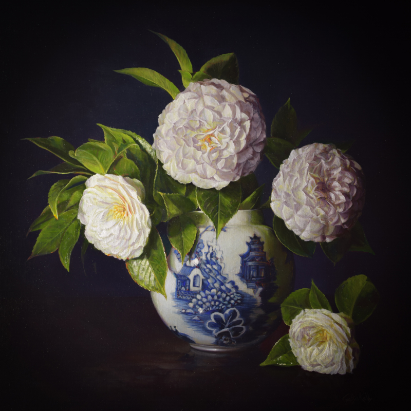 Camellia Japonica 61x61cm oil on linen 2022 - sold